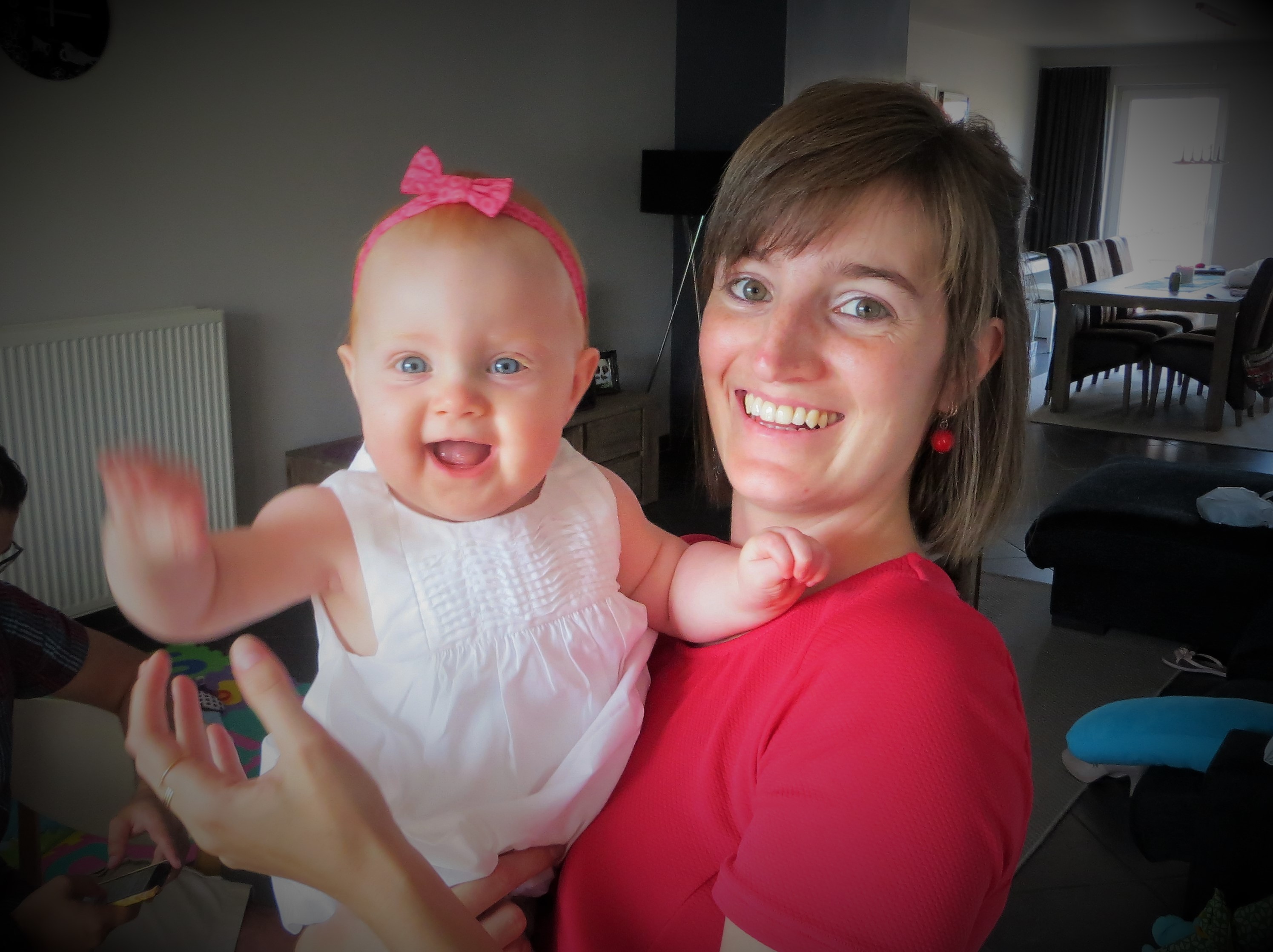 Wat een mooie dag moest worden, werd een nog mooiere ! Alles wat mama wou: 7 zonnen, een flinke uitgeslapen meid met een fonkelende glimlach, lieve mensen en een gezellig feest met lekker eten. Met speciale dank voor de opstellers en afbrekers, fantastische mensen waar ik altijd op kan rekenen, op elk moment, voor elke gelegenheid. Een dikke merci!